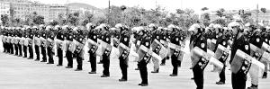7月下旬,烈日当头,气温高达36℃,地面温度灼热如火。随着威武的命令声,500名头戴卡夫拉头盔,身着黑色警服的特警,手持警棍盾牌展开整齐的防暴队形,十几分钟内就干净漂亮地处理了一起“群体性事件”。这是广州市民耳熟能详而又充满神秘色彩的广州特警正在集体演练。